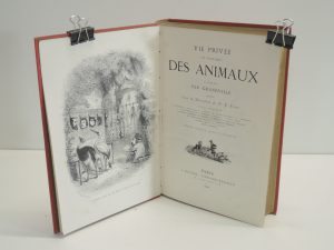 VIE PRIVEE ET PUBLIQUE DES ANIMAUX, vignettes par GRANDVILLE, PARIS, HETZEL 1868. Cartonnage éditeur, titre et plaque sur plat. Tranche or. Dos passé.