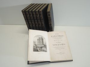 HISTOIRE DE LA BASTILLE par MM. ARNOULD ET ALBOIZE DE PUJOL, PARIS 1844 .6 tomes + les 2 tomes DONJON DE VINCENNES. Gravures sur acier. Demi chag, dos orné avec titre. QQ rousseurs.