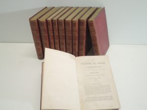 EUGENE SUE, LES MYSTERES DU PEUPLE ou histoire d'une famille de prolétaires à travers les ages, BRUXELLES ET LEIPZIG, PARIS 1848-1865. 10 vol, nombreuses illustrations. Demi chag plat toile, titre or et dos orné. Le tome 10 est abimé et il lui...
