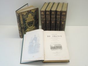 GUIZOT, L'HISTOIRE DE FRANCE, depuis les temps les plus reculés jusqu'en 1789, PARIS, HACHETTE1879-1882. Belles illustrations. 5 vol, cartonnage éditeur signé MAGNIER, plaque de SOUZE. Tranche or . JOINT : HISTOIRE DE FRANCE de 1789 jusqu'en 1848...