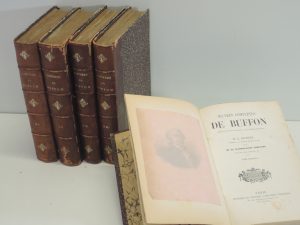 OEUVRES COMPLETES DE BUFFON, notice par M.A..RICHARD, suivies de la classification comparée d'après CUVIER, LESSON,etc.....PARIS, LEGRAND ET CROUZET 1863. 5 tomes, 772 p, 752 p, 731 p, 560 p, 567 p, texte sur 2 colonnes, 100 planches couleurs....