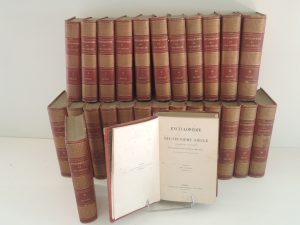 ENCYCLOPEDIE DU DIX-NEUVIEME SIECLE répertoire universel des sciences, des lettres et des arts. PARIS, au bureau de l'encyclopédie 1855. 26 tomes dont 1 sup. Texte sur 2 colonnes. Reliure solide en demi chag, titre en 2 pièces caissons ornés,...