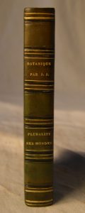Paris, librairie des écoles 1835. In 16° demi veau vert, 204 pp. Suivi de Fontenelle – Entretiens sur la pluralité des mondes.Paris, Adolphe Rion 1835. 174 pp. 1 ff.