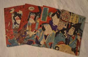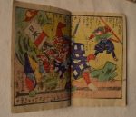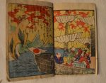 Ensemble de 4 romans dans le genre des kusa-zôshi. (Circa 1860). 4 brochures In 16° sur papier Wushu (Murier) de 12 pp., chaque, illustrés de bois en couleur.