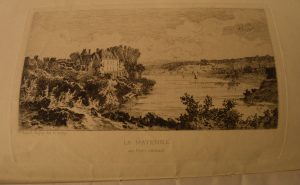 Réunion de 3 plaquettes. 1 – Le puits de L'Ecoublère. Mamers 1879. avec une eau-forte de Tancrède Abraham. 2 – La restauration artistique de l'hotel de Pincé. Angers 1881. 3 – Notice historique sur le château de Port-Joulain avec une eau-forte (sur 2) de V. Huault-Dupuy.