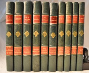 Ensemble de 10 vol. In 8 demi basane verte. 1 – Eddy (J. W.) - Mes chasses à l'ours en Alaska. 2 – Wallace (H. F.) - Mes chasses en Chine. 3 – Hunter (J. A.) - Chasses tropicales. 4 – Szczepkowski (Jan) – Chasses polonaises. 5 – Villiers (A. J.) - Pirates et aventuriers des mers du sud. 6 – Daly (M.) - La grande chasse en Afrique. 7 – Young (W. E.) - Les requins. 8 – Malet (R.) - Les périls de la grande chasse. 9 – Hass (H.) Mes chasses sous-marines. 10 – Brasser (J. C.) - Mes chasses dans la jungle de Sumatra. Bel ensemble uniformément relié.