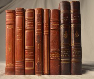 1 –Régnier (Henri de) & Droit (Jean) – L'escapade. 2 – Carco (Francis) & Dignimont – De Montmartre au quartier latin. 3 – Erckmann-Chatrian & Bourdier – Histoire d'un conscrit de 1813. 4 – White (S.E.) & Lébédeff – Terres de silence. 5 – Verlaine (Paul) & Brouet (Auguste) – Poèmes saturniens. 6 – Hermant (Abel) & Siméon – Les confidences d'une aieule. 7 – Boylesve (René) & Sauvage (Sylvain) – La leçon d'amour dans un parc. 8 – Boylesve (René) & Sauvage (Sylvain) - Les nouvelles leçons d'amour dans un parc. Qq usures aux reliures