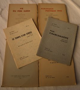 1 – Maublanc (Jean-Daniel) - Paul Charlemagne. 2 – Ginet (Albert) & Serveau (Clément) - Le temps d'un songe. Exemplaire enrichi d'un envoi de l'auteur. 3 - Maublanc (Jean-Daniel) – Peinture 1940. 4 – Maublanc (Jean-Daniel) & Roche (Marcel) - Morceaux choisis de Xavier Forneret. Exemplaire enrichi d'un envoi de l'auteur. 5 – Almanach poétique 1942. Exemplaire enrichi d'un envoi de Jean Daniel Maublanc, de Paul Charlemagne et de Jean Vagne. 6 – Kanters (Robert) & Feuillatte (Raymond) – Vie du père surin. Exemplaire enrichi d'un envoi des auteurs.