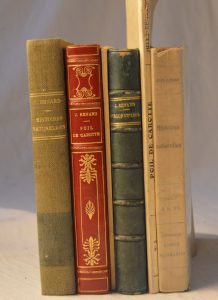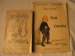 1 – Histoires naturelles, illustrations de Bonnard. Flammarion 1949. In 12° demi toile verte, couv., conservée. 2 - Poil de carotte, illustrations de Vallotton. Flammarion 1926. In 12° demi chagrin rouge. 3 – Le pain de ménage. Albin michel 1950. In 12° broché. 4 – L'écornifleur. Ollendorff 1892. Première édition. In 12° demi veau bleu. 5 – Poil de carotte, illustrations de Poulbot. Calmann-Lévy. In 8° broché. 6 - 1 – Histoires naturelles, illustrations de Bonnard. Flammarion 1911. In 12° broché. Bons exemplaires.
