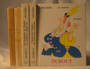 Paris, Gonon 1959. In 8° cartonné , 245 pp. 2 – Code des impôts. Paris, Gonon s.d.. In 8° cartonné , 274 pp. 3 – Molière – Les fourberies de scapin – Le médecin malgré lui. Paris, Trinckvel 1954 In 8° cartonné. 4 – Molière – L'école des femmes – Les précieuses ridicules. Paris, Trinckvel 1954 In 8° cartonné. 5 – Molière – Les femmes savantes. Paris, Trinckvel 1954 In 8° cartonné. Bon ensemble.