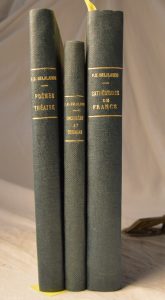 1 – Cathédrales de France. Chapitre III de la geste gauloise. Calligraphie de René Binet et 10 graures de Ch. J. Hallo. In 4° demi toile verte, couv., conservée, un des ex. sur vélin du marais suivi de : Prières dans la cathédrale. 2 – Orchidées et seringas. In 8° demi toile verte suivi de : La geste gauloise. I La révolte des Celtes. Illustrations de Marcel Recher. 3 – Lutèce, mes belles amours. In 4° demi toile verte. Suivi de : La faim, la haine et la lèpre. Dessins de Jacques Faizant. Suivi de : Le dernier homme. Suivi de : Un poète vien du!rhin. L'idylle de Sessenheim. Lithographies de Marthe Heintz