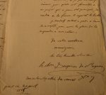 Juriconsulte, poète. L.A.S., « confidentielle» adréssée à Fouché, datée du 20 avril 1815, dans laquelle il propose à Fouché son intervention en vue de séparer de la coalition l'Empereur d'Autriche. 2 ff. In folio. Avec pour adresse de retour ». Dans son hermitage, allée des Veuves N°7 ».