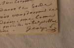 Femme de lettres. L.A.S. 2 ff. In 8° (à son chiffre) adréssée à Mr Louis Blanc. Nohant 5 mai 1845. Longue lettre relatant ses sentiments contradictoires par rapport au mariage de sa fille avec Auguste Clesinger et le fait de rompre les fiançailles avec Fernand des Preaulx pratiquement la veille du mariage.