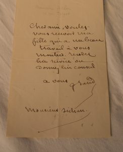 Femme de lettres. L.A.S. 1 ff. In 8° adréssée à Mr Séchan lui priant de bien vouloir recevoir sa fille.