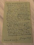 Femme de lettres. L.A.S. 2 ff. In 8° (à son chiffre) adréssée Auguste Clésinger, Nohant 6 mai 1854. Longue lettre dans laquelle elle supplie Clésinger de ne pas s'occuper du « qu'en dira t'on et de se consacrer à son art ». Elle lui assure qu'on ne lui enlèvera pas sa fille Jeanne dont elle s'occupe personnellement à Nohant.