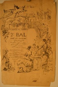 L.A.S. 1 ff. In folio écrite au dos d'une affichette ( 40 x 26 cm) « Théatre de la Tchernaya, 2ème Bal paré et costumé, le jeudi 13 mars 1856 ». Plis, déchirures en marges.