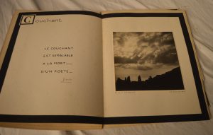 Maquette originale pour un livre de photographies principalement sur Paris et ses environs, agrémenté de poèmes de Baudelaire, Renée Viven, Gérard d'Houville,intitulé « au fil des jours » composé de 24 ff., avec un dessin original en guise de frontispice, 7 poèmes avec en regard une photographie argentique contrecollée et six autres photographies insérées.