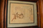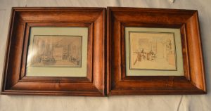 Homme d'état Français. Paire de dessins originaux encadrés sous verre. 1 - Dessin au fusain (10 x 6,5 cm), représentant le salon de la Reine Hortense au château d'Arenberg (Suisse). 2 – Aquarelle (10 x 8,5 cm) représentant le prince Louis-Napoléon Bonaparte et son gouverneur Mr Philippe Le Bas au château d'Arenberg (Suisse). Ces dessins, de la main de Louis Napoléon Bonaparte,sont restés jusqu'à ce jour dans la descendance de Philippe Le Bas.