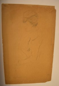 Portrait de femme de profil, dessin au crayon ( 20,5 x 13 cm) sur papier, signé en bas à droite.