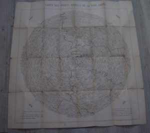 Carte des points visibles de la Tour Eiffel. Paris, Imprimerie Ch. Unsinger. Carte photogravée et repliée, 75,5 x 74,5 cm. Rare et curieuse carte circulaire figurant les environs de Paris et les points visibles depuis le dernier étage de la Tour Eiffel, publiée l'année de son inauguration, lors de l'Exposition universelle de 1889. Dessinée par A. Bourdon et photogravée par Charles Fernique.
