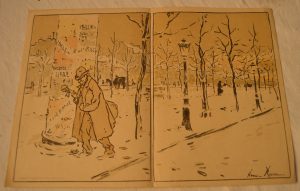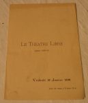 Programme pour le Théâtre Libre, saison 1889-1890 (Le pain d'autrui de Tougueneff, En détresse, le 10 janvier 1890). Lithographie (Eugène Verneau Imp.), 29,5 x 20 cm. Belle épreuve avec le texte du programme au verso. Pli central.