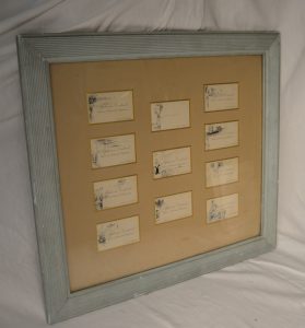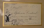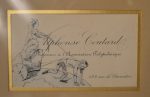 Bel ensemble de 11 cartes de visite du chansonnier Alphonse Coutard (encadrées sous verre), enrichies de dessin originaux. On y joint un portrait d'Alphonse Coutard. Dessin au crayon signé Alfred le petit