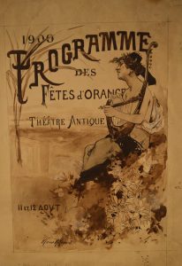 Dessin de Marius Roux-Renard, (45 x32 cm) pour le projet de l'affiche du « Programme des fêtes d'Orange » Théatre antique le 11 et 12 aout 1900.
