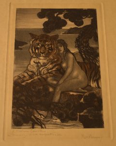 Eau-forte sur Japon ( 20,5 x 14,5 cm.). Enrichi d'un bel envoi de l'artiste à Mr de Courville. Cette eau-forte à servi à illlustrer « Les poèmes antiques et modernes » de Leconte de Lisle. Beau tirage à grandes marges. Pli dans le coin supérieur (en marge).