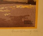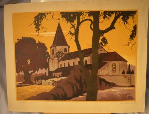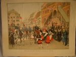 Schmitt (Ernest) - Le Dompeter près de Molsheim. Lithographie ( 62 x 44 cm), signée et datée au crayon en bas à droite. On y joint : Huen (Victor] – Mulhouse – 17 novembre 1918 «  Les Français à la Libération, le 17 Nov. 1918 devant l'Hôtel de Ville de Mulhouse. » Gravure ( 64 x 46 cm).