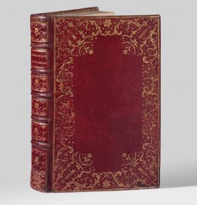 In-8 (211 x 135 mm), maroquin rouge, large dentelle aux petits fers dorés, dos orné, roulette intérieure dorée, tranches dorées (Reliure de l'époque).