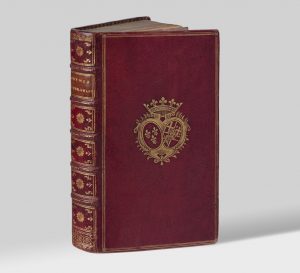In-12 (162 x 94 mm), maroquin rouge, triple filet doré, armoiries au centre, dos orné, dentelle intérieure dorée, tranches dorées (Reliure de l'époque).