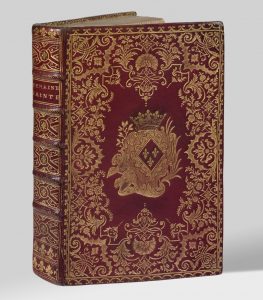 Sur cet Office de la Semaine Sainte, imprimé en 1753 « par ordre de Madame Marie-Adélaïde de France », la couronne royale surmontant les armoiries et les fleurs de lis sur le dos ont été frappées à l’époque, mais après que le doreur eut apposé la plaque ornementale.