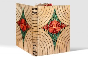 In-12 (180 x 130 mm), bradel vélin ivoire au décor incisé à la pointe et peint en creux, motifs floraux peints en couleurs et doré dans le losange central, filets noirs courbes aux angles, dos lisse orné de filets noirs, gardes peintes en rouge, rose et noir, tête dorée, non rogné, couverture et dos, étui, emboîtage de toile moderne (Françoise Picard).