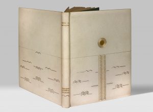 In-4 (326 x 245 mm), maroquin blanc, décor stylisé évoquant un soleil au-dessus de la mer formé de filets dorés et au palladium, dos lisse, bordure intérieure en maroquin blanc ornée de même, tête dorée, non rogné, couverture et dos, chemise et étui gainés de maroquin blanc, emboîtage de toile moderne (Antoinette Cerutti).