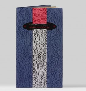 In-8 étroit (220 x 130 mm), reliure souple en box bleu imitation lézard, bande verticale de box blanc et rouge imitation lézard et étiquette de titre à l'œser blanc et rouge rivetée de pastilles rouges sur le premier plat, doublures de nubuck bleu, couverture, chemise et étui (J. de Gonet, 1983).