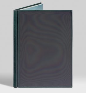 In-8 (240 x 183 mm), bradel basane verte, plaque de verre hologrammatique conçue par Piotr Kowalski encastrée dans chaque plat, dos lisse titré à froid, doublures bord à bord de même basane, doubles gardes en phototypie, chemise à recouvrement en demi-basane verte et feutre blanc comportant au centre du premier plat, sur un support spécial, une bague en or 750 avec l'inscription Cimento 9.11.1978 gravée à l’intérieur, étui assorti ([Bernard Duval]).