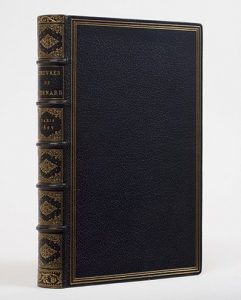Grand in-8, maroquin bleu, triple filet doré, dos orné, dentelle intérieure dorée, tranches dorées sur marbrure (Allô).