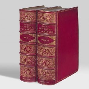 2 volumes grand in-8, maroquin rouge, triple filet doré, dos richement orné, dentelle intérieure dorée, tranches dorées (Chambolle-Duru). Édition originale de la traduction de Louis Viardot.