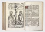 ► Superbe impression gothique à deux colonnes du typographe bâlois Adam Petri de Langendorf (1454-1527), agrémentée de lettrines ornementales à fond noir et de la marque de Ludwig Hornken au dernier feuillet de la quatrième partie.