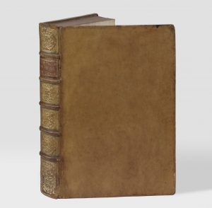 In-4, veau fauve, fine roulette à froid en encadrement, dos orné d'un chiffre répété couronné, roulette intérieure et sur les coupes, tranches rouges (Reliure de l'époque).