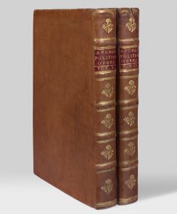 2 volumes in-folio, veau fauve, dos orné, pièce de titre rouge, filet doré sur les coupes, tranches rouges (Reliure italienne du XVIIIe siècle).