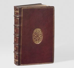 2 parties en un volume in-4, maroquin rouge, triple filet doré, armoiries dorées au centre, dos orné de caissons au double filet contenant un chiffre répété, tranches dorées (Reliure de l'époque).
