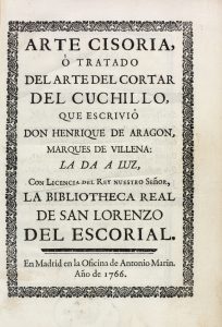 VILLENA (Enrique de Aragón, Marquis de). - Arte cisoria, o tratado del arte del cortar del cuchillo. Madrid, Antonio Marin, 1766.