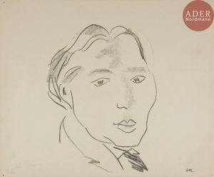 Henri MATISSE - Cortot (mondain). 1926. Autographie. 383 x 288. Duthuit-Garnaud 476. Très belle épreuve sur japon fort, numérotée et signée au crayon. Nombreux fins plis cassés, certains légèrement frottés. Petite épidermure au-dessus du...