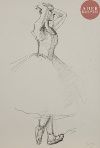 André DERAIN - Danseuse, mains à la tête. Vers 1927. Lithographie. 455 x 255. Très belle épreuve sur vélin fort, signée au crayon. Rousseurs claires éparses. Toutes marges.