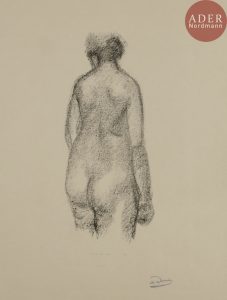André DERAIN - Nu de dos debout coupé aux cuisses. 1929. Autographie. 325 x 135. Adhémar 89-1. Très belle épreuve sur vélin glacé mince, revêtue d’une signature lithographiée en bleu-gris au moyen d’une pierre additionnelle. Toutes...