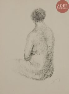 André DERAIN - Nu de dos assis coupé aux cuisses. 1929. Autographie. 307 x 208. Très belle épreuve sur vélin mince, signée au crayon. Fin pli vertical le long du bord inférieur gauche. Toutes marges.