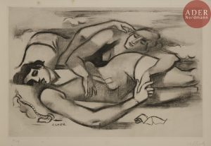 André LHOTE - La Plage, deux baigneuses. 1927. Vernis mou et roulette. 325 x 481. I.F.F. 15. Très belle épreuve sur vélin fort, numérotée et signée au crayon. Quelques rousseurs éparses et traces d’oxydation aux bords du feuillet....