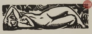 Roger de La FRESNAYE - Nu étendu ; Deux nus étendus. (Illustrations pour Tête d’or de Paul Claudel – planches non publiées).Vers 1911. Bois gravé. 32 x 108 et 40 x 130. I.F.F. 1 [1 et 2]. Très belles et fraîches épreuves...