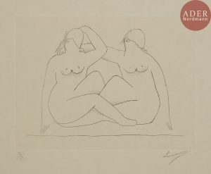 Henri LAURENS - Deux nus. Vers 1929. Eau-forte. 198 x 268. Völker 12. Parfaite épreuve sur simili-japon fort, numérotée et signée au crayon. Toutes marges. Tirage à 50 épreuves.